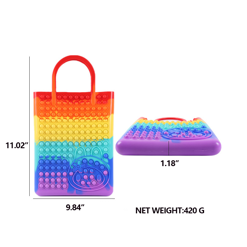 This handbag combines the most popular bubble push pop fidget sensory toys element design. It is the most fashionable tote bag and a popular toy that can relieve anxiety. It can match all kinds of clothes well. The ample capacity space of you can store daily necessities, also can stress relief when boring. Custom logo available.
