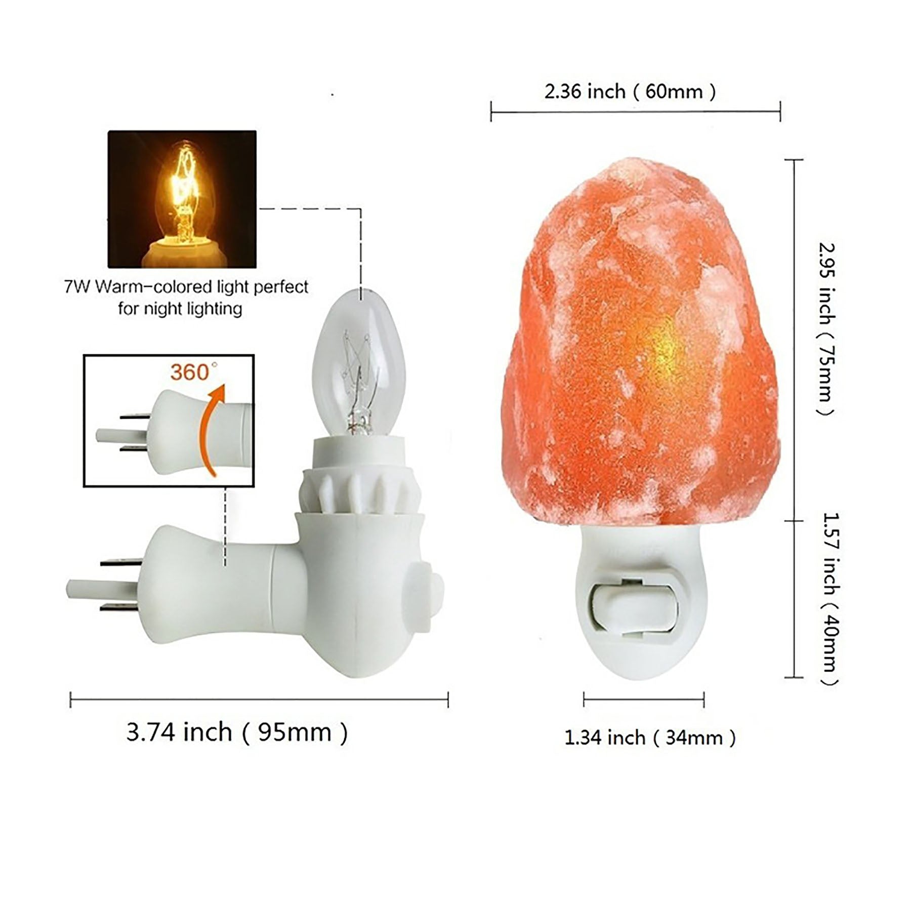 Elevate your space with our Night Lights, crafted to provide a peaceful and calming nightlight ambiance. Ideal for any room, our Himalayan salt lamps emit a soothing amber glow that fosters relaxation. The Salt Crystal emits negative ions, naturally purifying the air for a serene atmosphere. Enhance your well-being and focus with our Night Lights, ensuring a restful sleep and refreshed mornings. 2 3/4″ L x 2 3/4″ W x 3 1/8″ H