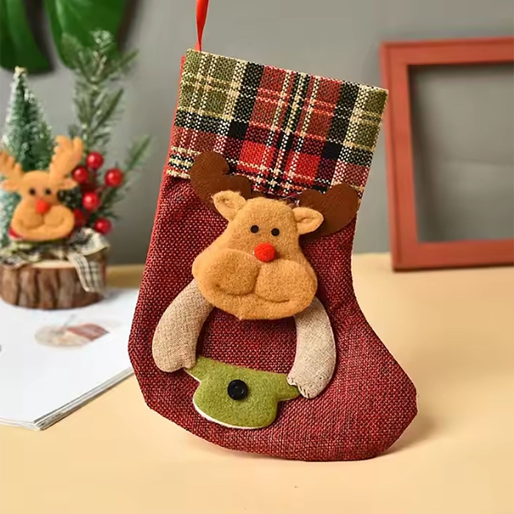 This Christmas sock is filled with classic elements and festive colors, perfect for adding holiday cheer to your home. Use it as a decoration or fill it with treats for a fun surprise. The stocking gift bag is ideal for parties and family gatherings, creating a festive atmosphere. Fill them with treats and hang them on your tree. These stockings are made from safe and comfortable material, perfect for decorating your holiday parties. Enjoy the season with these festive stockings. 7.87″ L x 12.2″ W x 5.51″ H