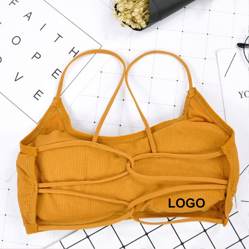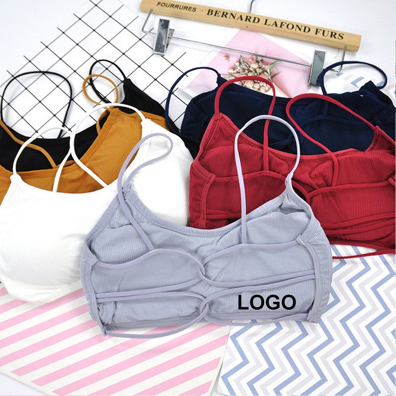 Breathable cotton sports bras in one size (A/B cup, under 132 lbs). Medium impact with quick-dry fabric and moisture-wicking technology. Crisscross strappy back design for perfect shape. Pair with high-waisted leggings or jeans for a stylish look. 1″ L