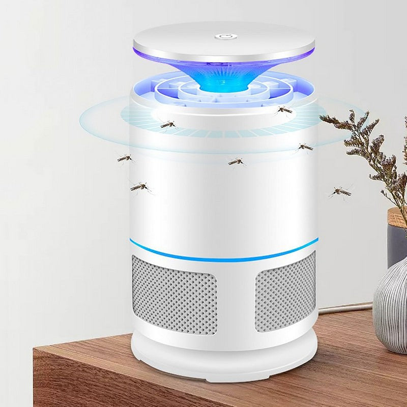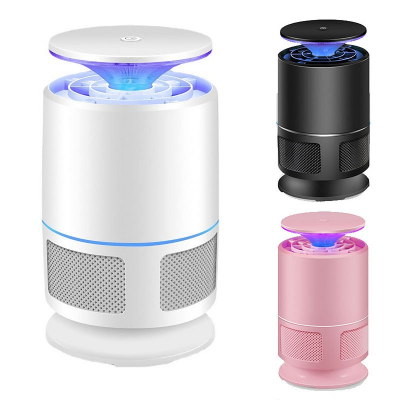 THIS PRODUCT IS TO USE ON MOSQUITOS ONLY. USB plug-in. UV light bulbs emit 368nm wavelength. This wavelength has a fatal attraction of insect’s mosquito. Mosquitos are attracted to the light source, and then they will be trapped into the mosquito tray under strong cyclone. Powerful cyclone will make the mosquito dehydrated and died. It is no radiation, non-toxic and chemical-safe, and is extremely silent, being ideal for the baby nursery or adult bedroom Safe for human health and environment. Powered by USB so you can connect this with an adapter, power bank, computer or any device with a USB port. It is very portable and perfect for indoor and outdoor. It can kill mosquitos or use for lighting. 8 1/4′ L x 4 3/4′ W x 4 3/8′ H