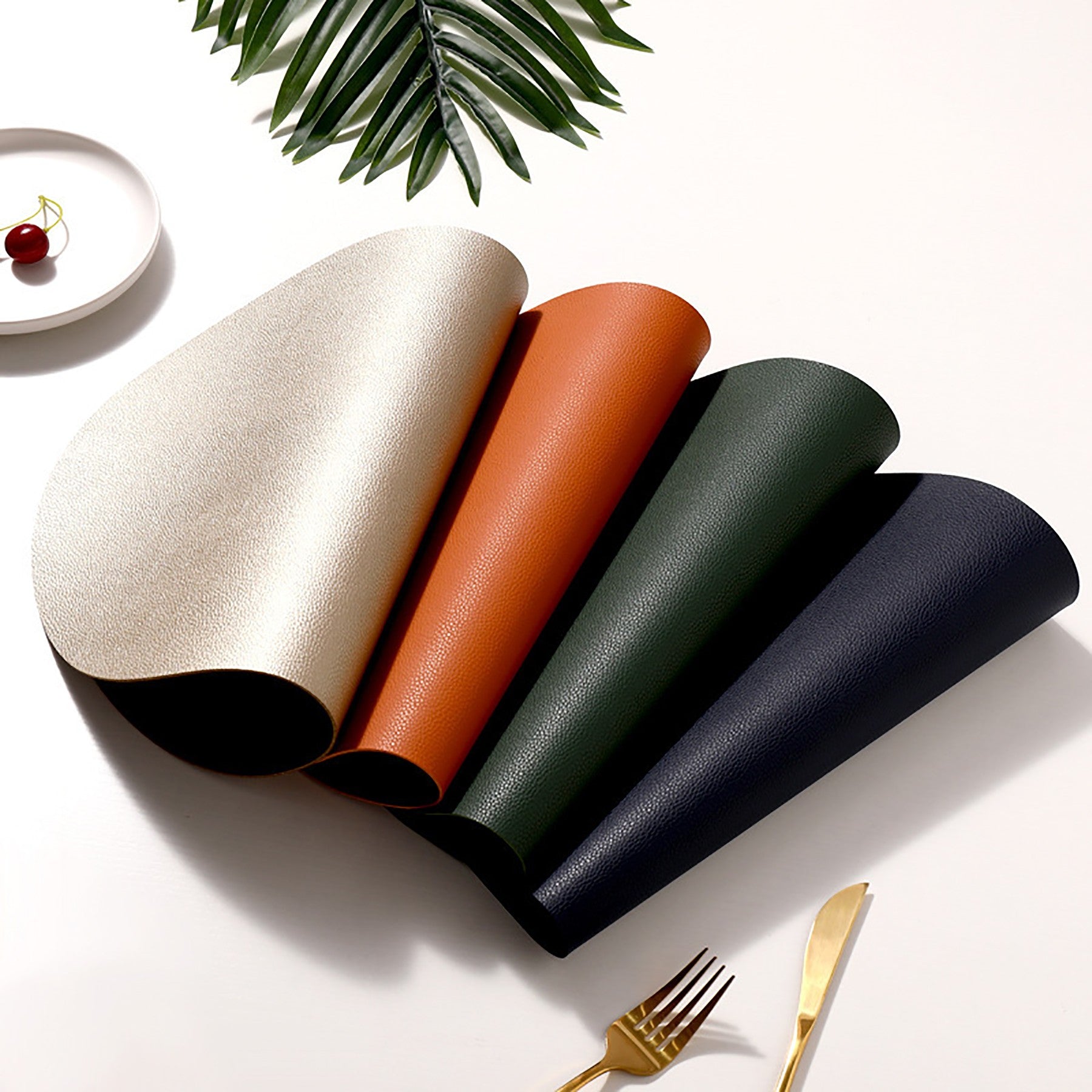 Upgrade your dining experience with this versatile synthetic leather table mat. It offers a luxurious and practical solution with a reversible design for a durable, non-slip surface. odorless and easy to clean with a damp cloth. Perfect for everyday use or special occasions in any modern home. A must-have accessory. 17.72″ L x 11.81″ W
