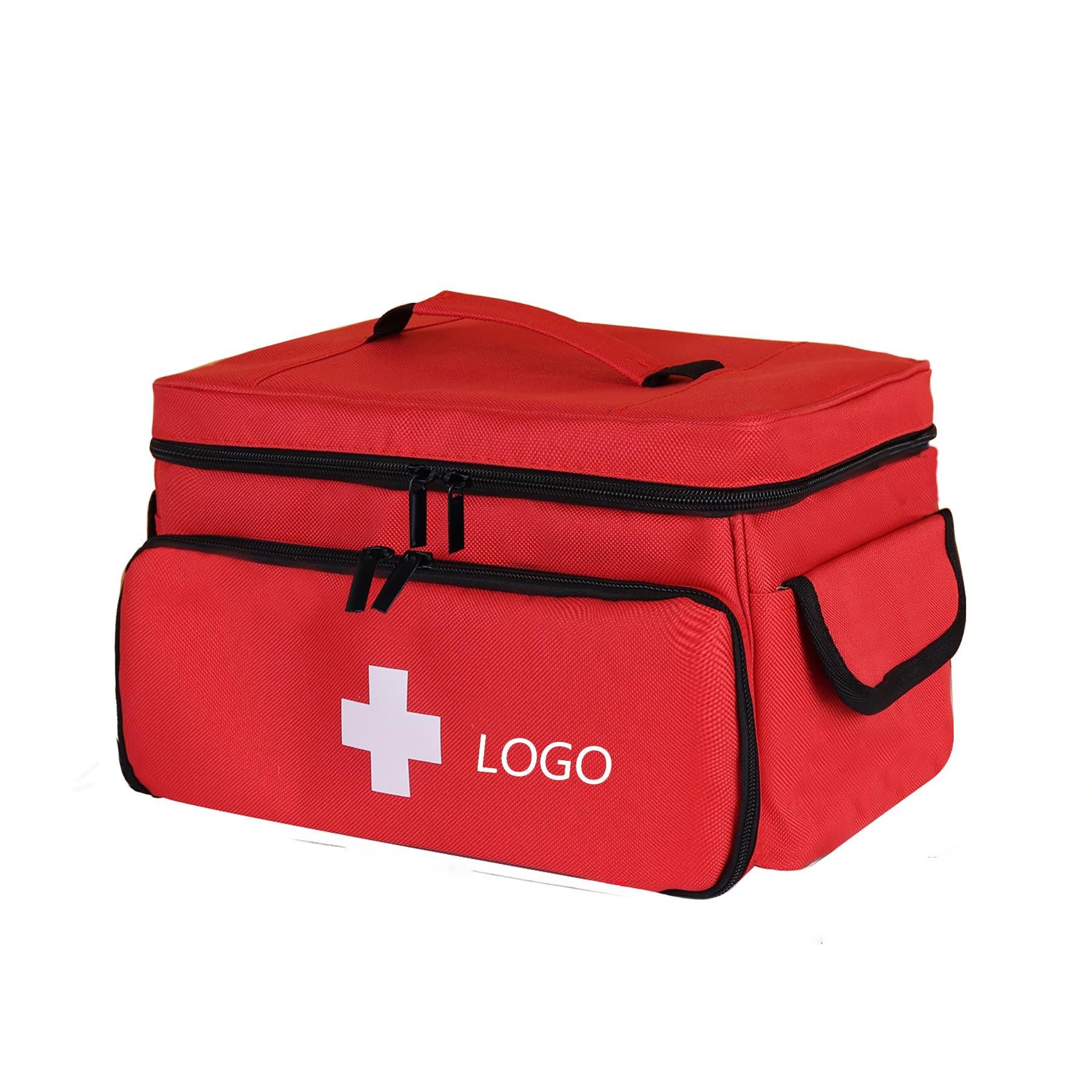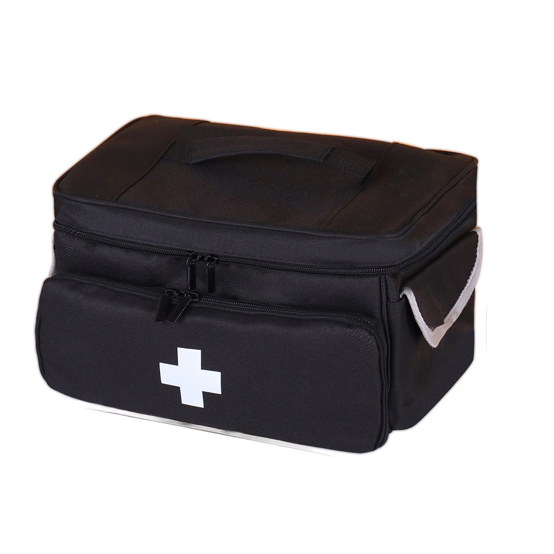 The main compartment of the drug storage bag is equipped with a silky and durable double sliding zipper for quick retrieval of drugs. The cross logo on the front is beautiful and eye-catching, the side pockets are fixed with velcro, and the top handle is easy to carry, making travel convenient. Made of heavy-duty impact resistant oxford cloth material, it can withstand daily use and ensure proper protection of medical supplies. The sturdy design of the first aid bag ensures long-lasting durability and reliability. There is ample internal space with multiple compartments, and the empty first aid kit can be customized with storage space according to individual needs. Easily organize your first aid essentials such as bandages, disinfectants, and medications. 11.42″ L x 7.68″ W x 6.89″ H