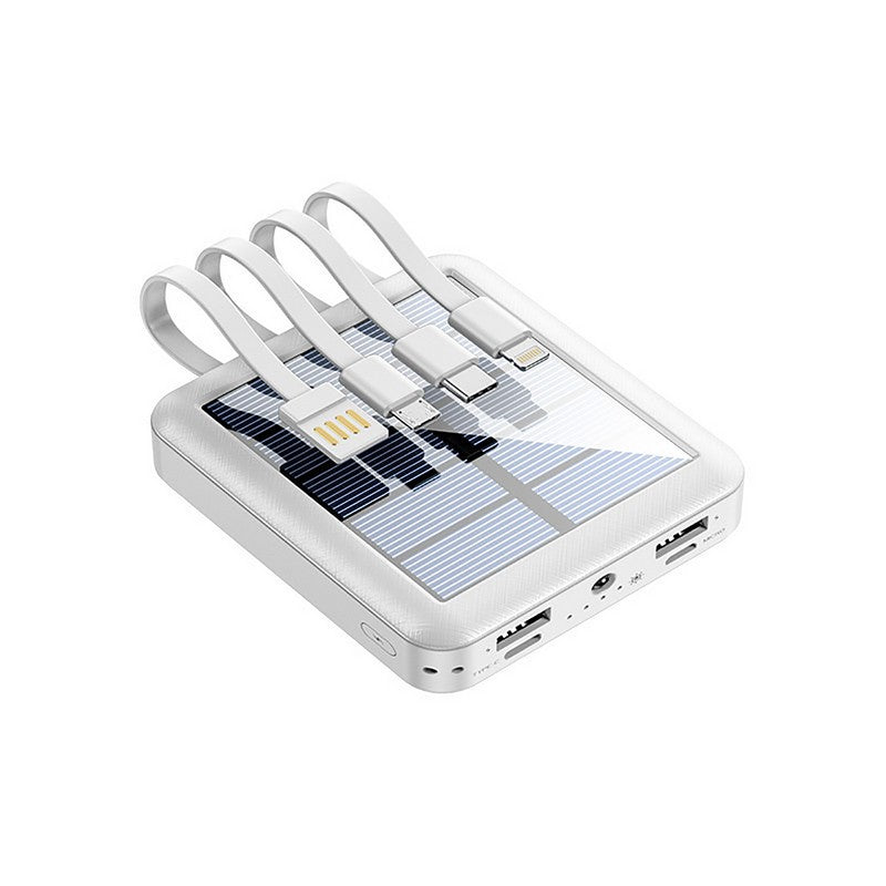 This portable charger can charge up to 4 devices simultaneously with fast 2.1A speeds. It has a built-in cable, LED battery indicator, and textured surface for a secure grip. The 10000mAh power bank is sleek, convenient, and perfect for on-the-go use. Ideal for sharing with family and friends. 3.46′ L x 3.07′ W x 1.02′ H