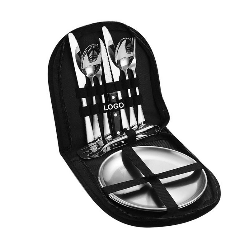 Portable outdoor cutlery set with kitchen accessories such as knife, fork and spoon. It is made of stainless steel and has a compact design that makes it easy to carry. It also comes with an organizer bag to keep all the items together. This cutlery set is designed for people who are always on the go. It is compact and easy to carry around. The set features a fork, spoon and knife so you can eat whatever you want, whenever you want. The polished surface and smooth edges make it easy to clean by hand dishwasher safe to save time and effort. The camping cutlery set is made of food-grade stainless steel with sharp blades and a thicker design for safe and durable outdoor use. This camping cutlery set is made of food grade stainless steel with brushed finish, easy to clean and safe to use. 12.76″ L x 9.06″ W x 9.06″ H