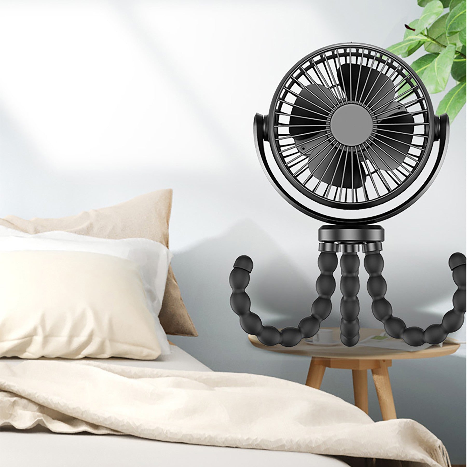 Introducing our innovative flexible tripod fan with durable silicone legs that outperform traditional sponge legs. This fan is reliable and long-lasting, with sturdy legs that can be bent for versatile use as a clip-on, handheld, desk, or stroller fan. It also doubles as a power bank for mobile devices, making it the ultimate summer gadget. 12.59″ L x 5.7″ W x 2.59″ H