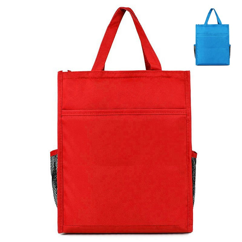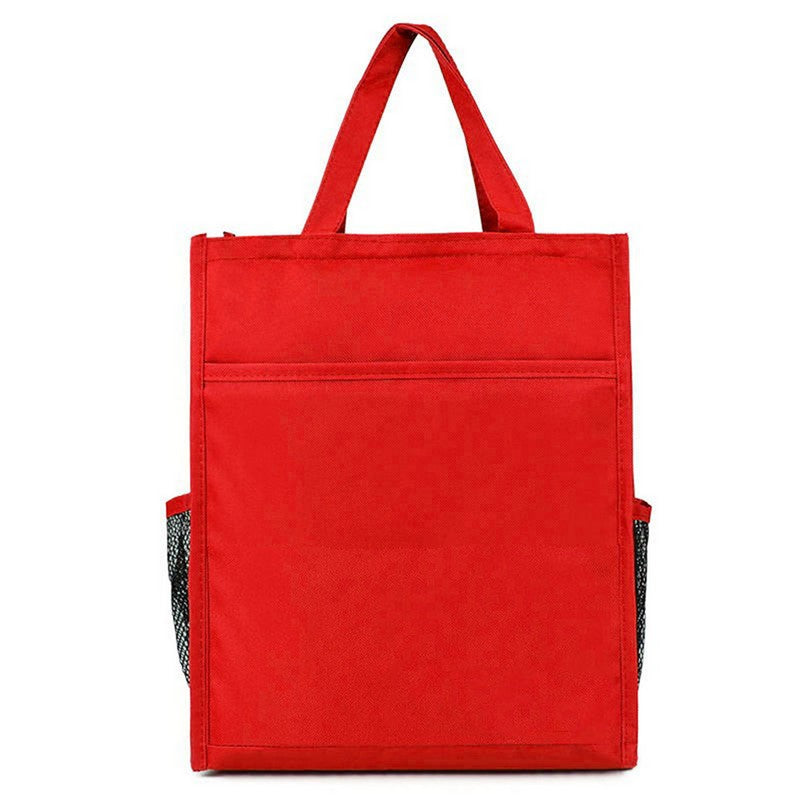 This custom grocery tote is made of sturdy oxford fabric, featuring a fashionable two-tone design with two pockets contains a mesh pocket for bottles. Its large size can hold plenty of goods, making it perfect for shopping, picnics, and travel. 11.42′ L x 4.73′ W x 13.78′ H