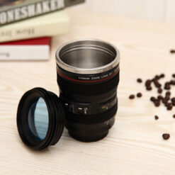 New and potential clients can picture themselves working with your brand when you advertise on this camera self-stirring mug! Made of food-grade silicone and stainless steel, it meets FDA requirements and features a self-stirring function. Recipients just add coffee or their favorite beverage and flip the switch (two AA batteries required, but not included). This fashionable and unique item is shaped like a camera lens, letting them show off their love of photography while enjoying their drink. It’s safe for hot or cold beverages and comes with a screw-on lid to prevent leaks while traveling. Add your logo to create a great promotional gift! 3.26′ L x 6.52′ W