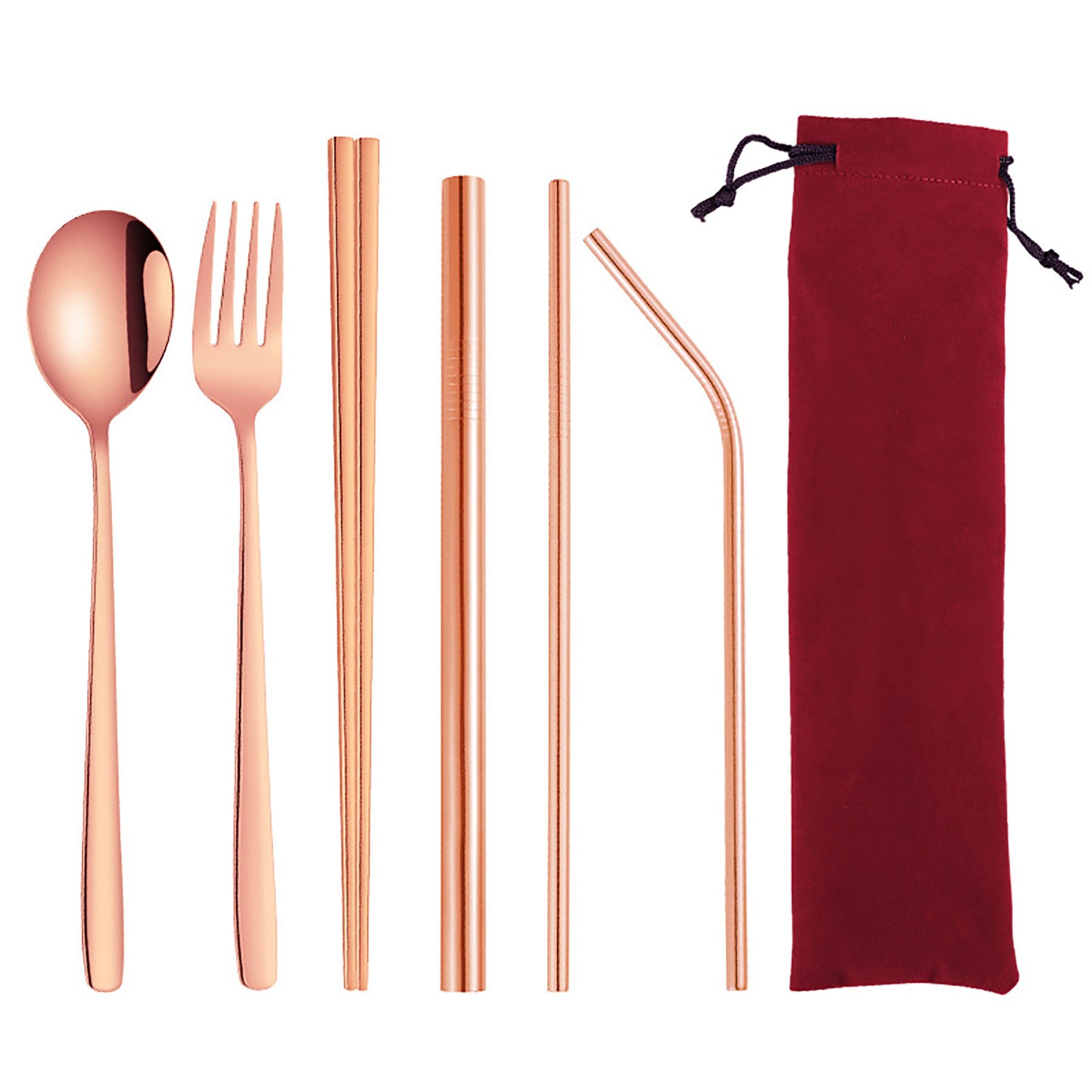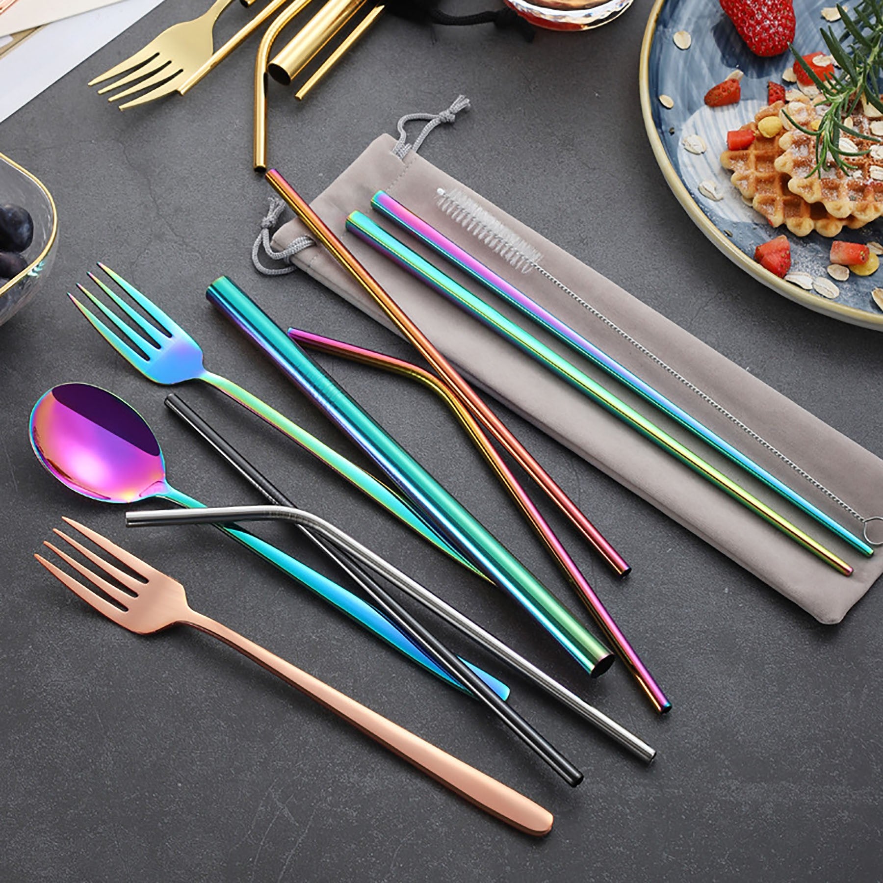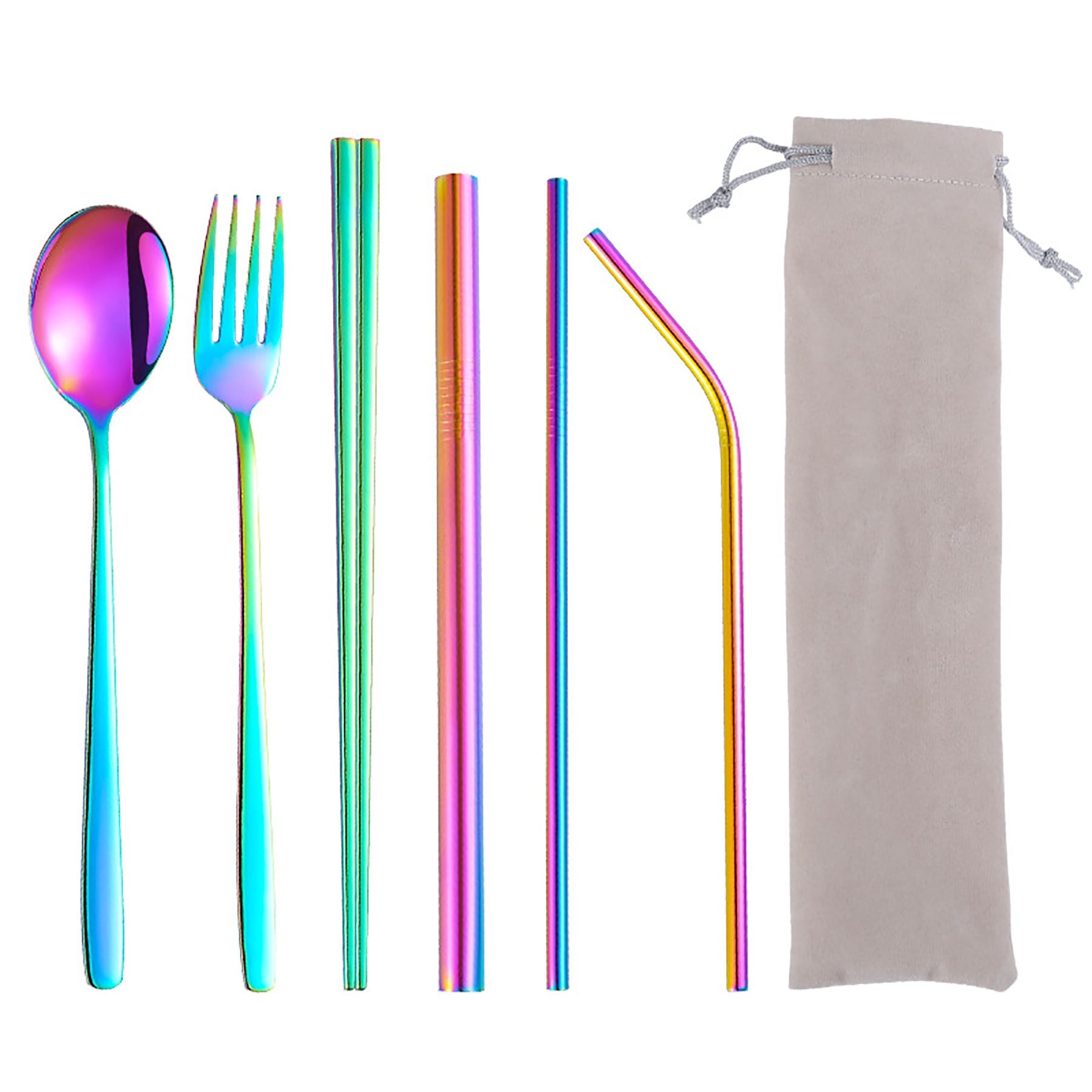 Introducing our premium cutlery set made from high-quality 304 stainless steel, resistant to rust and corrosion. Set contains Dinner Fork, Tablespoon, Knife, Chopsticks, Cleaning Brush, Straight Straw, Bent Straw, Carrying Case, and Pouch. Perfect for home, offices, restaurants, hotels, and outdoor activities. Upgrade your dining experience with our eco-friendly set today! 10.03″ L x 2.95″ W x 1.2″ H