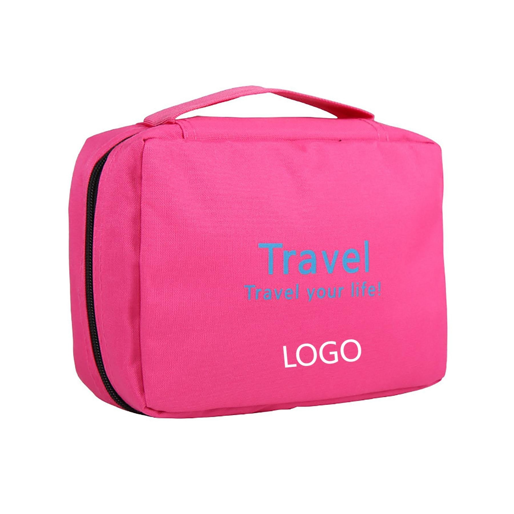 The perfect companion for your adventures. Made with durable, water-resistant material, multiple compartments, and sturdy zippers, it meets all your travel needs. Foldable for easy storage, it contains a metal hanging hook for bathroom convenience. Keep toiletries organized and secure on the go. Personalize with your logo for a unique touch. 8.66″ L x 6.7″ W x 2.75″ H