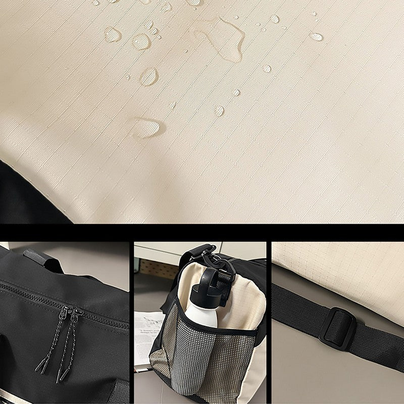 This durable, water-resistant Nylon bag is lightweight and easy to clean. It has multiple pockets for organization and can be worn as a handbag or crossbody. Perfect for travel, it comes with a wet pocket and a toiletry bag. Ideal for the gym, beach, or travel, it can also be used as a dance bag, luggage bag, or mommy bag. 19.75′ L x 9.09′ W x 11.46′ H