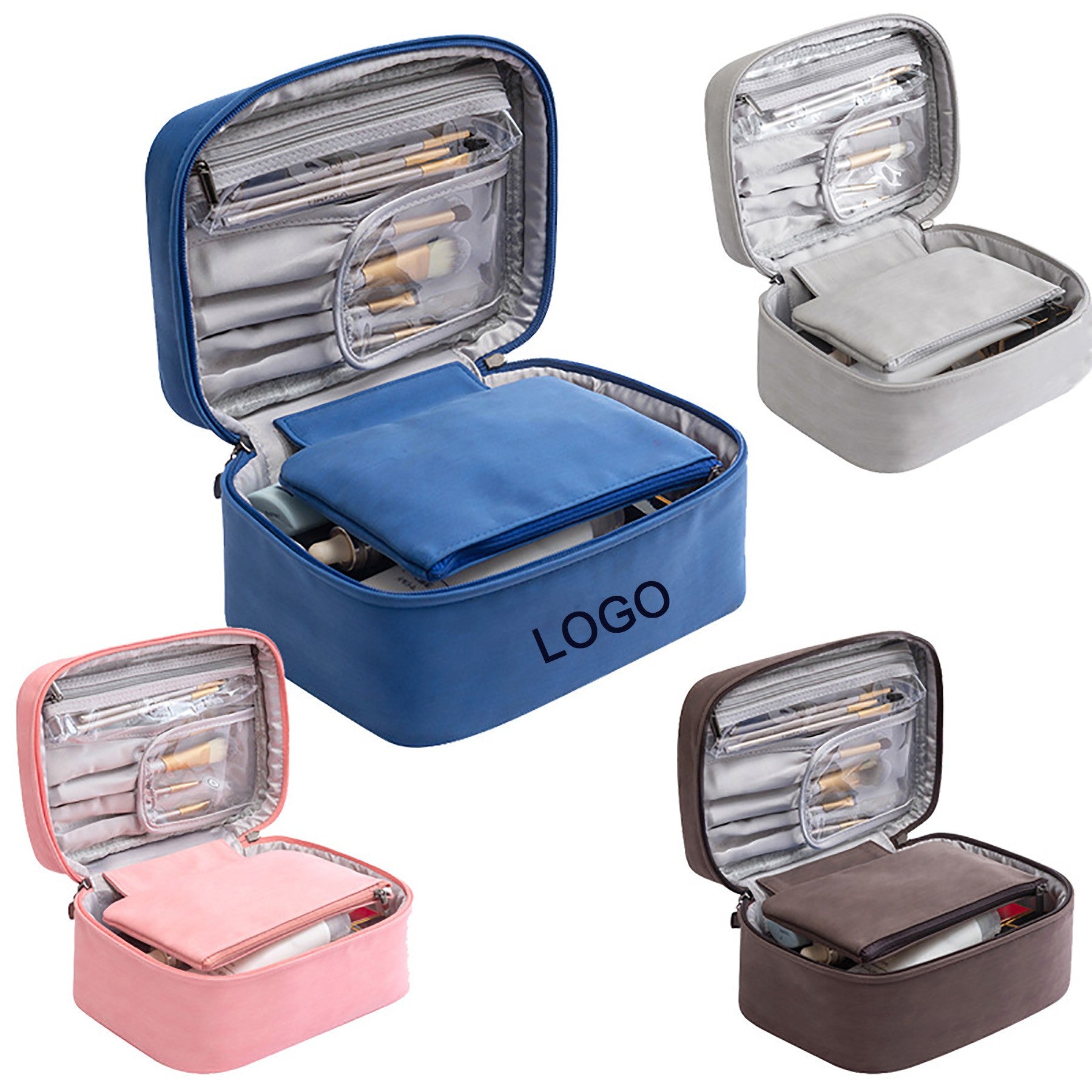 Experience convenience and organization like never before with our spacious Lightweight Cosmetic Bag. This versatile bag offers ample room for all your storage needs, whether you’re packing makeup, skincare products, or more. The included small zipper bag is perfect for organizing smaller items. This lightweight bag reduces the burden of carrying heavy luggage, making your travels easier. The thickened bottom increases its load-bearing capacity, ensuring all your essentials are securely stored. Wherever your journey takes you, this makeup brush case will be a reliable companion. 8.85″ L x 5.9″ W x 4.7″ H