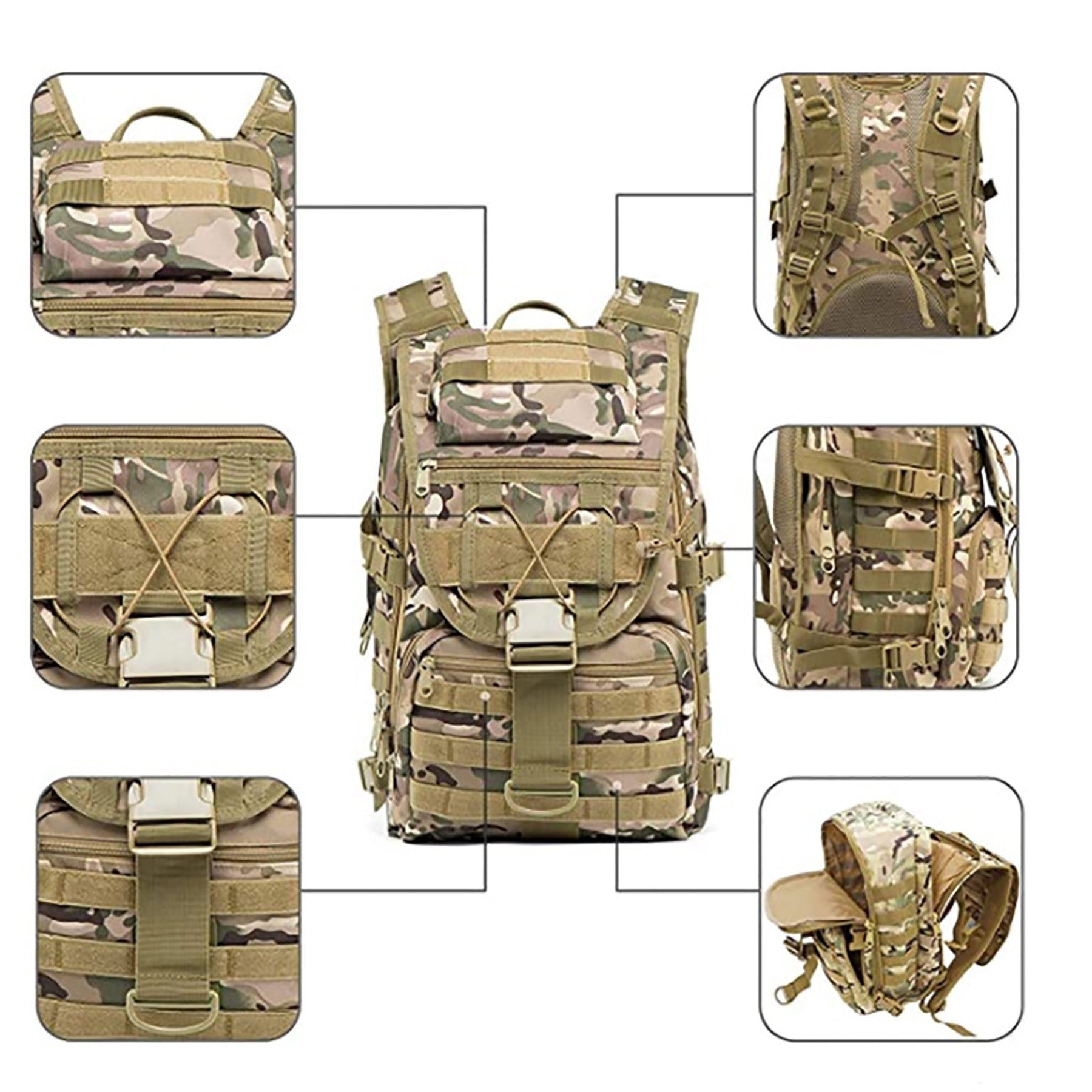The MOLLE system allows you to easily attach outdoor gear, tactical pouches and sleeping pad. The tactical laptop backpack has breathable padding back area, padded mesh shoulder straps with D-ring attachment points, removable sternum straps. This tactical backpack can be used as assault pack, bug out bag backpack, range bag, survival backpack or day pack for daily use. It is a great companion for camping, hiking, vacation, travelling, trekking. 17.7″ L x 7″ W x 12.2″ H