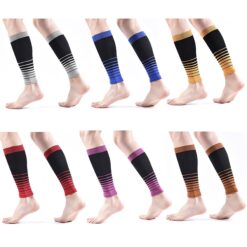 Our compression sleeve keeps muscles warm, reduces injury risk, and improves performance. It provides breathable support, enhances blood flow in leg muscles, and prevents cramping, fatigue, soreness, and swelling. Essential for athletes, it also helps with shin splints, calf cramps, and minor scratches. The sleeves improve venous return, promoting faster muscle recovery. Designed to support calf muscles and Achilles tendon, they are a must-have for enhancing athletic performance and preventing injuries. 9 7/8″ L x 5 1/8″ W x 5/8″ H