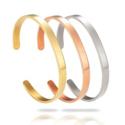 Made from high-quality stainless steel, this stylish piece has a sleek C-shaped design suitable for both men and women. Its versatility makes it a fashionable accessory for any outfit. The blank surface can be customized with logos and slogans through laser engraving, creating a unique and personalized piece of jewelry. 2 7/16″ L x 3/16″ W