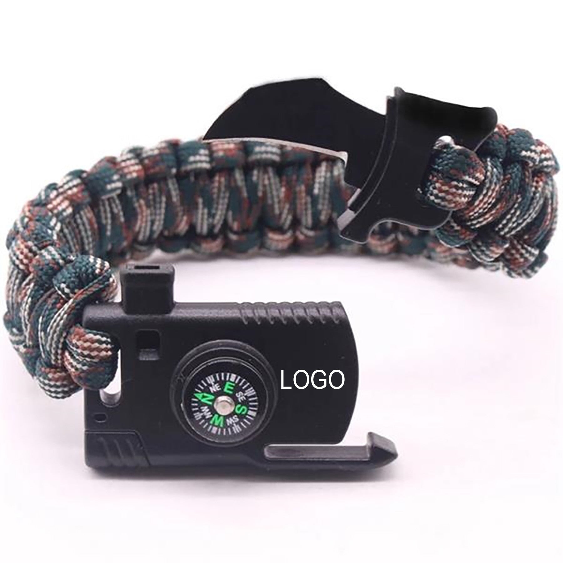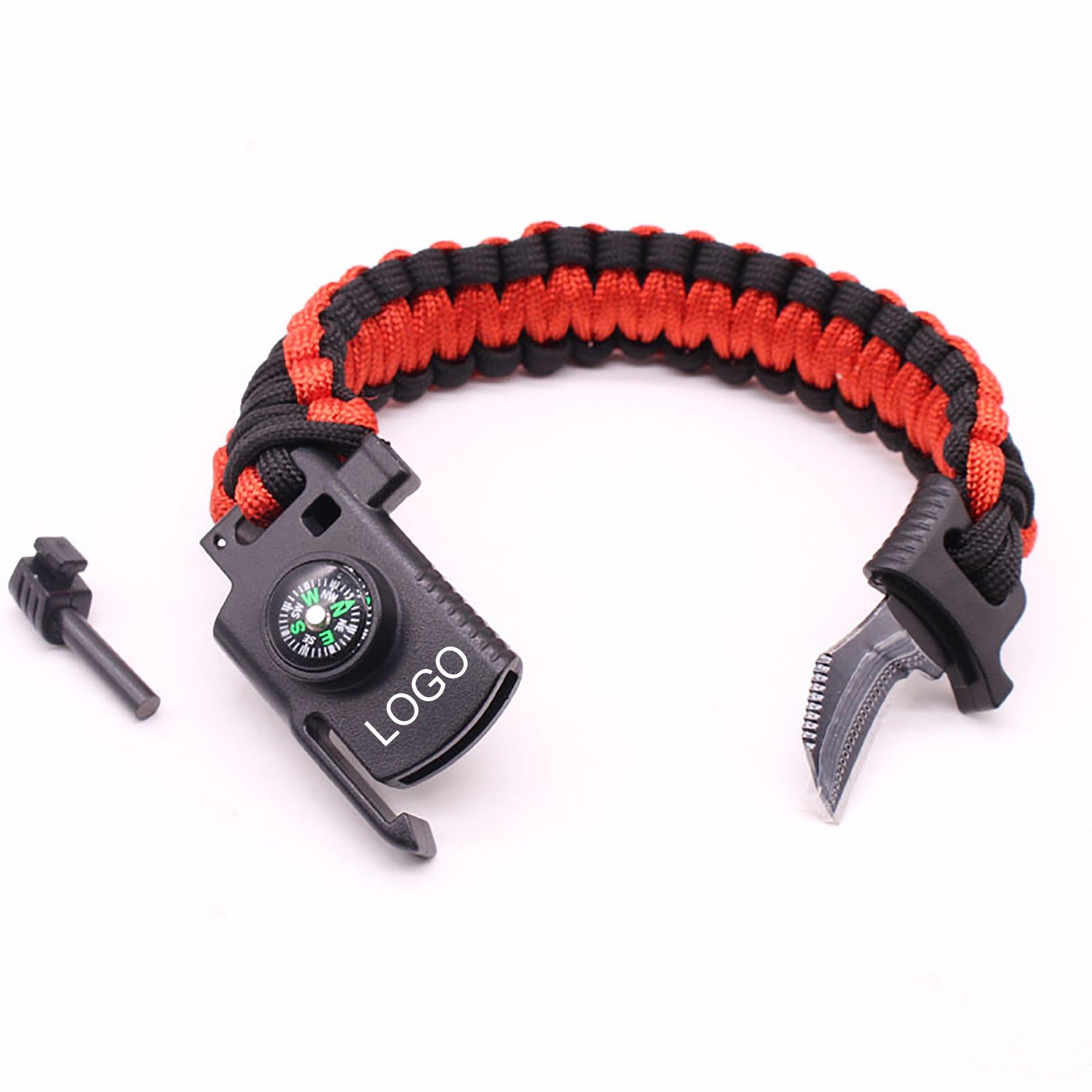 Promote your brand with our versatile survival bracelet! Made of durable paracord, it features a bottle opener, whistle, knife, fire starter, and bungee rope for outdoor safety. Available in different colors, customizable with your logo. Ideal as a giveaway for events to boost brand visibility. 9″ L x 7/8″ W