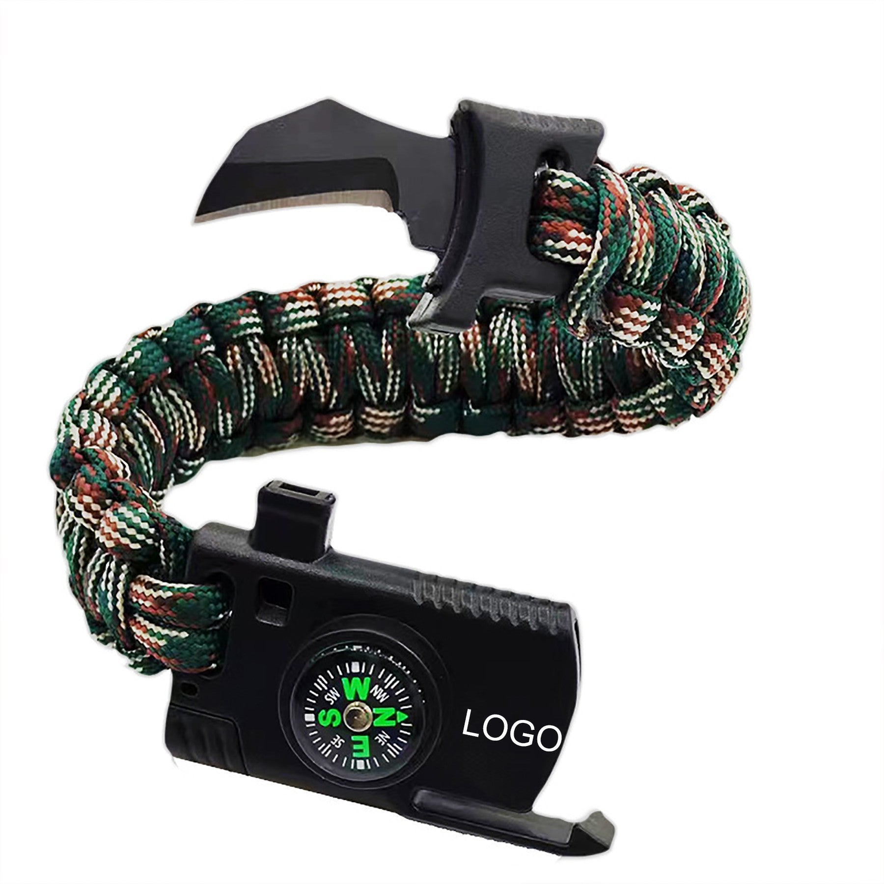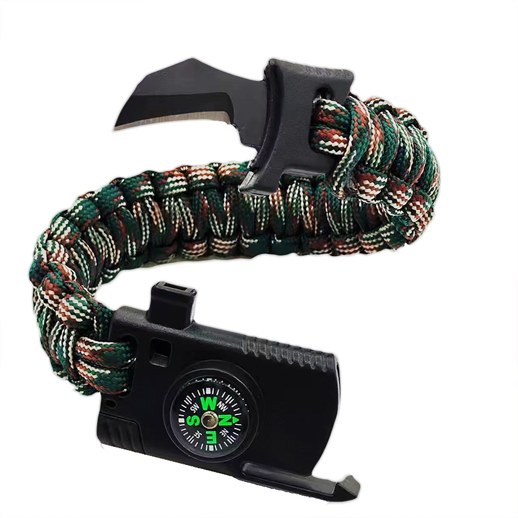 Introducing the Paraclaw Survival Knife – a stylish bracelet that doubles as the ultimate self-defense tool. Made from strong kernmantle nylon rope with a breaking strength of 220 kg, this knife bracelet is ideal for outdoor activities. It contains a flint flare starter, fire scraper, compass, and survival whistle, making it essential for any outdoor emergency. 9.5″ L