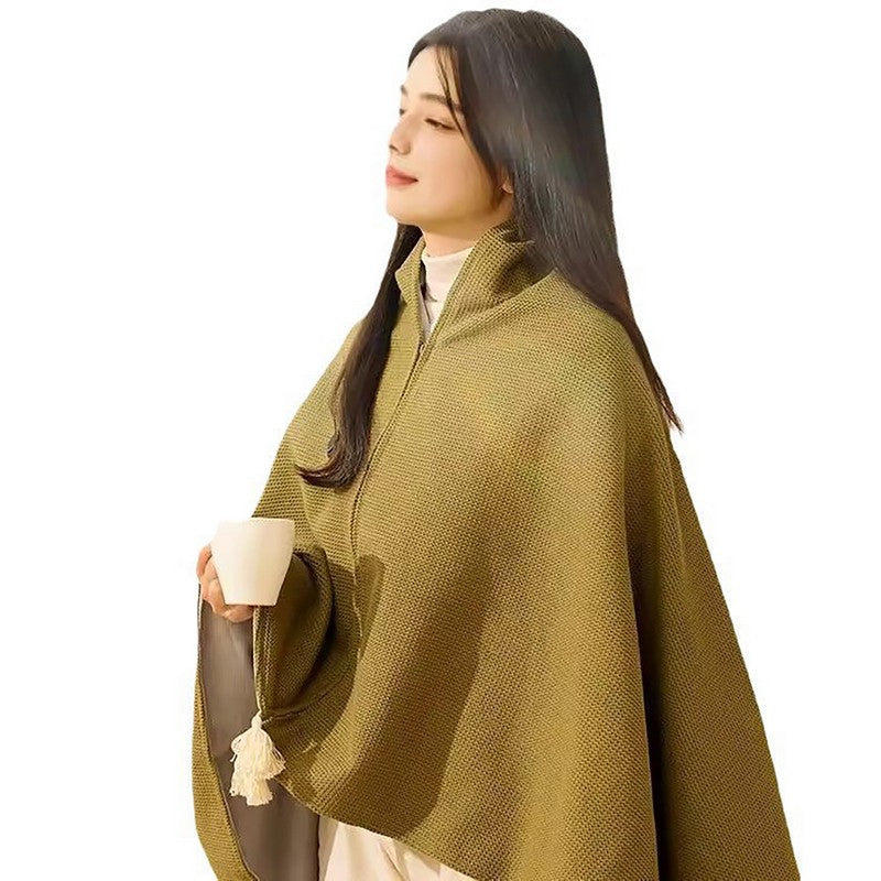This heated shawl uses advanced fiber technology to heat up in 15 seconds for efficient warmth. It has multiple temperature settings for personalized comfort and a safety zipper design for hands-use. Portable power bank not included. 59.06″ L x 31.5″ W