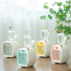 Enjoy cool wind anywhere with this air cooler that transforms hot, dry air into cold, refreshing breeze, its whisper-quiet operation makes it ideal for overnight use, ensuring a comfortable, uninterrupted sleep. Offered in a variety of colors, it can double as a charming home decoration to boost your mood, and it’s incredibly easy to assemble and operate asimply pour water into the top-fill tank, adjust the grille direction to your liking, and start enjoying the coolness. Boasting a sleek, compact design, it fits neatly on desks, nightstands, or coffee tables, and is versatile enough for use at home, in work offices, garages, RV campers, dorm rooms, and even for travel, letting you stay cool wherever you need it. 4.69′ L x 4.69′ W x 4.69′ H