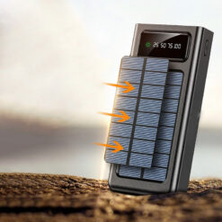 This 30,000mAh high-capacity solar power bank features a built-in Li-Polymer battery and integrated solar panel, ideal for outdoor use and emergency power. It supports 20W dual-direction fast charging and can power up to five devices simultaneously, those with wireless charging capabilities. The unit a 1.5W solar panel for up to 12 hours of lighting, plus 6 built-in LED lights with a combined 2W output (200 lumens), and an additional 3-mode LED flashlight with SOS function. Perfect for camping, hiking, fishing, and other outdoor adventures. 6.3′ L x 2.95′ W x 1.02′ H