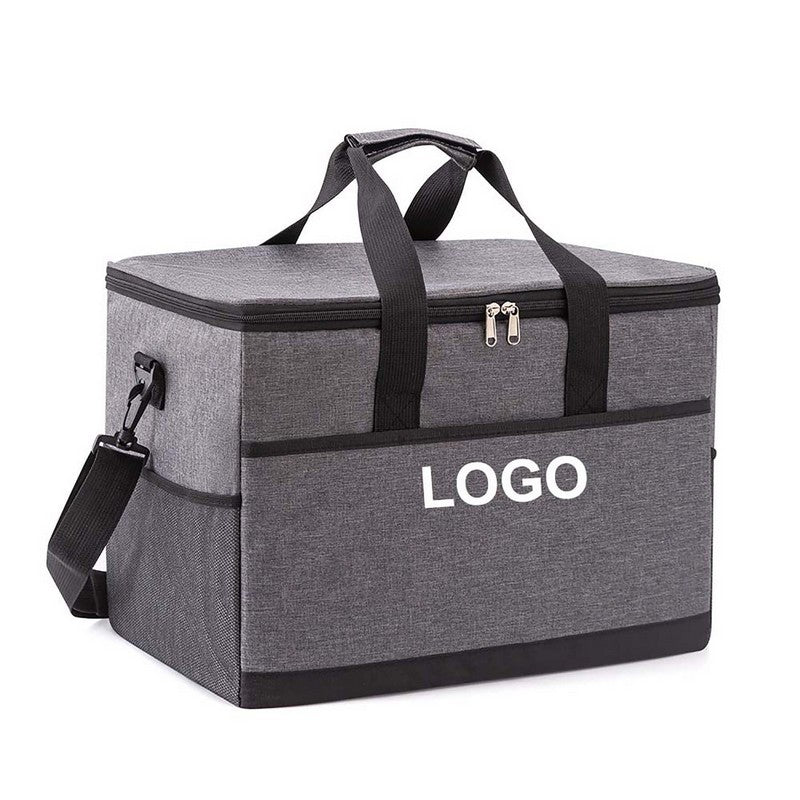 This insulated cooler bag is a great promotional item for fundraisers. Made of 600 Denier oxford with leak-proof PEVA lining. Features a main zipped compartment with 8mm EPE foam to keep food and drinks warm or fresh, plus a front zipper pocket and 2 side mesh pockets for small items. The dual webbing handle and adjustable shoulder strap make it convenient and comfortable to carry. Perfect for outings, BBQs, picnics, fishing, camping, or sporting events. 12 1/2′ L x 11′ W x 7 1/2′ H