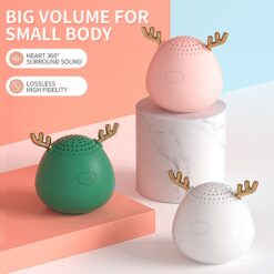 The compact, lightweight Speaker is portable and works with phones, laptops, and tablets. Perfect for coffee shops, parties, or outdoor activities. Its bright color and cute shape add style. With a 10-meter transmission distance, enjoy music anywhere, anytime. 2.36″ L x 2.76″ W