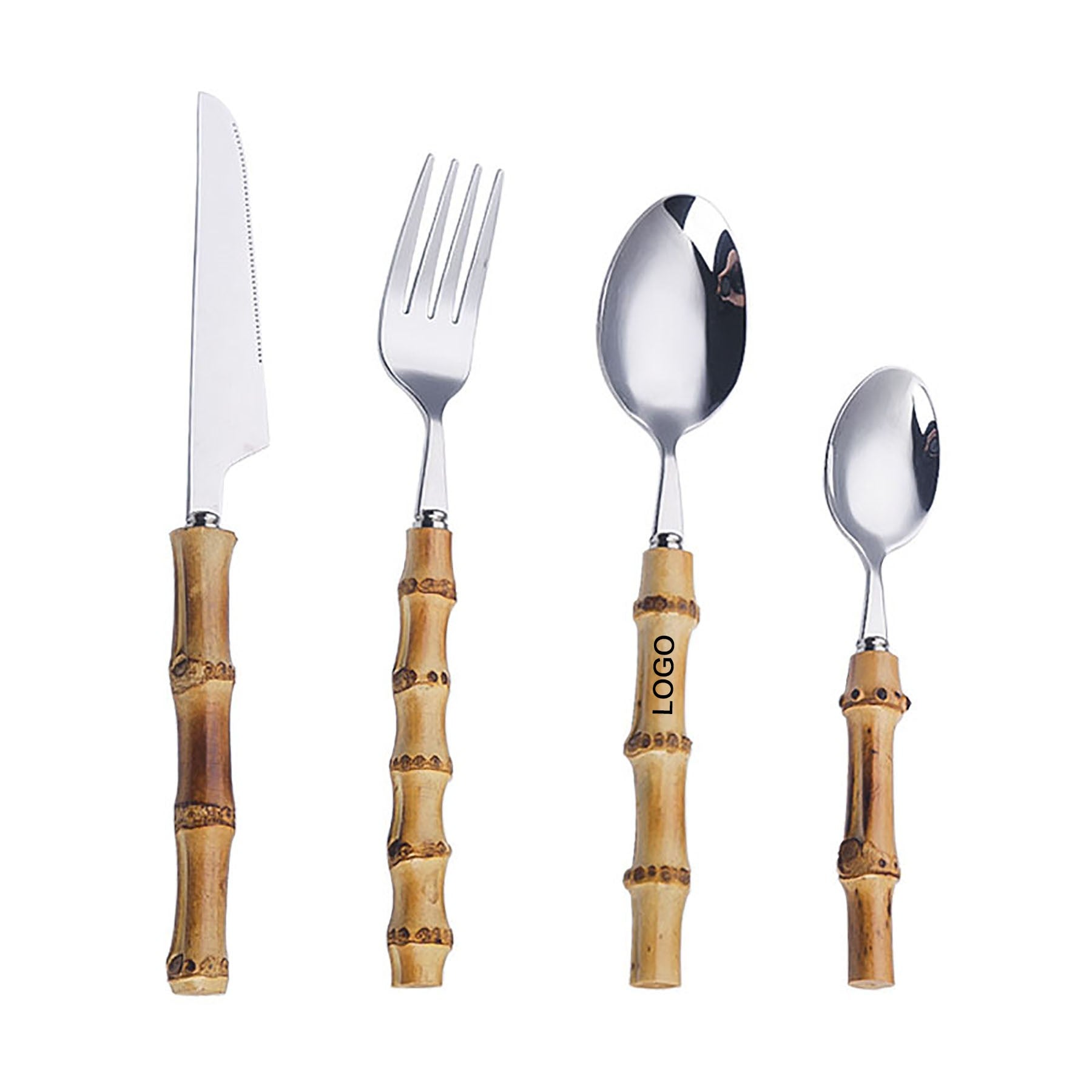 Food grade 430 stainless steel& natural bamboo cutlery/flatware set,do protect your health. The set include dinner knif x 1 dinner fork x 1 dinner spoon x 1 teaspoon x 1 Ideal for eating noodles, soups, dessert,cake and so on. Your logo can be printed on the giftbox. 9.4″ L x 3.75″ W x 1″ H