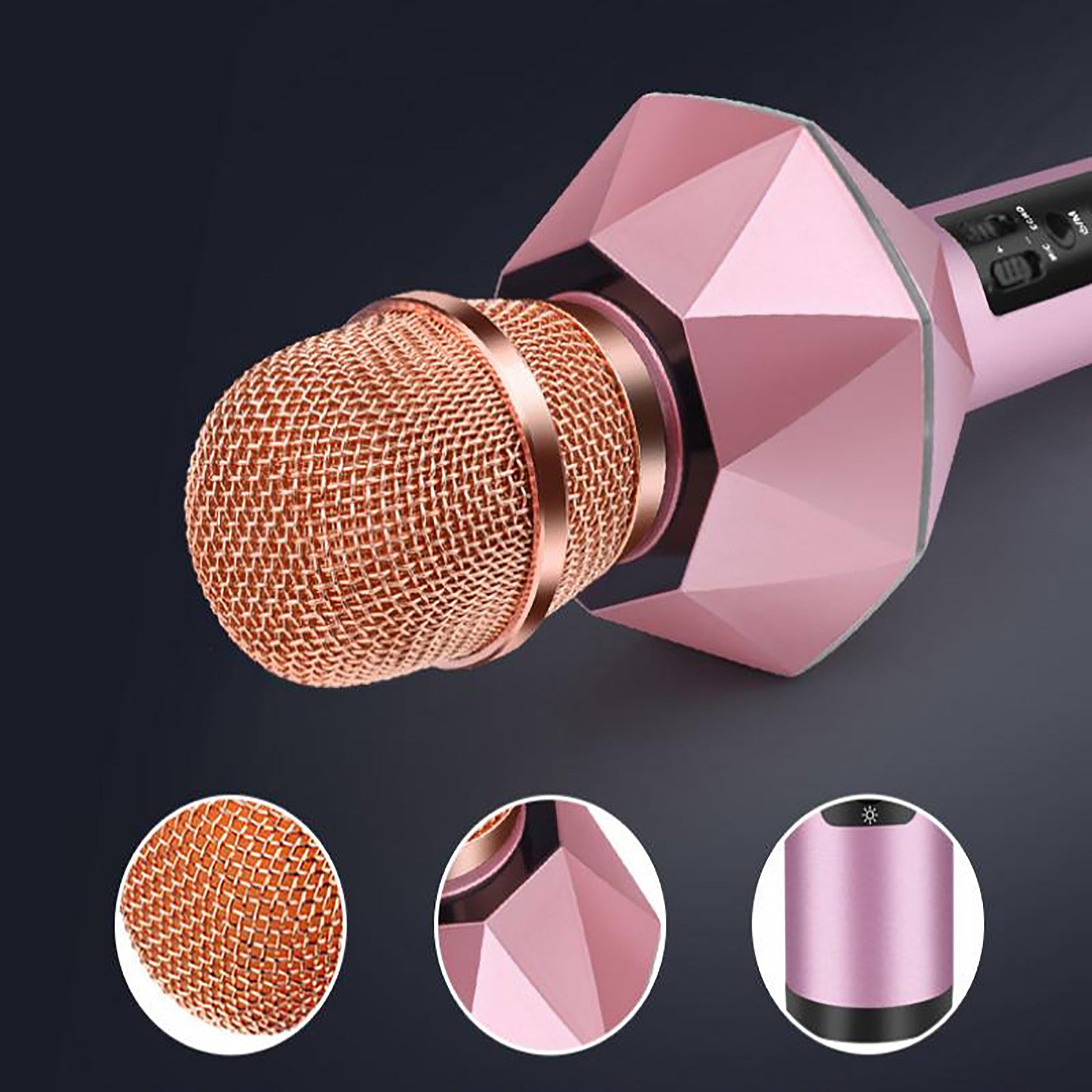 Enhance your gatherings with this portable wireless microphone. Perfect for socializing with friends, family, or outdoor events. Features a built-in speaker for streaming music from Bluetooth or USB devices. contains a high-quality Bluetooth speaker, compact family KTV system, and vibrant lights for added excitement. Create unforgettable memories with loved ones using music and lights. 9.6″ L x 1.9″ W