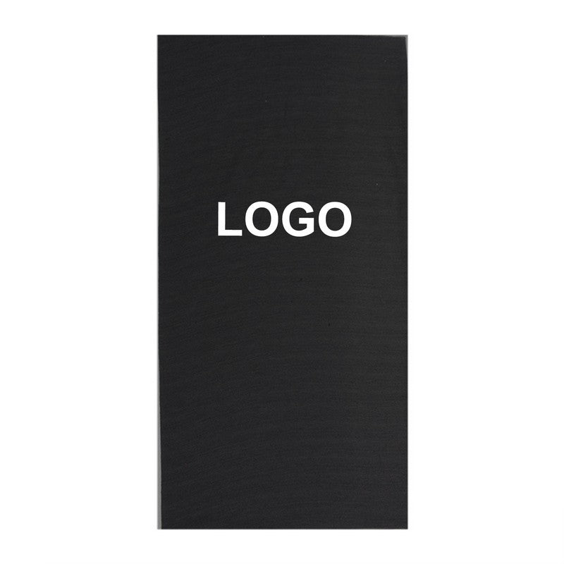 Screen printed. 0.5′ L x 0.1′ W on center. Second location: 0.5′ L x 0.2′ W on front. Price includes 1 color, 1 side, 1 location